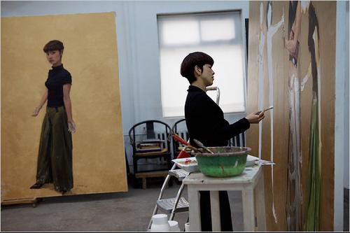 “許多買家都到美院去尋找下一個張曉剛”,北京一名藝術(shù)品經(jīng)紀人程新東(音)說道。張曉剛是當(dāng)代中國的一位藝術(shù)明星,他的一幅畫作今年2月在索斯比公司的倫敦拍賣會上拍出了330萬美元的天價。“這些買家會立刻和他們看上的學(xué)生聯(lián)系,甚至等不及學(xué)生們畢業(yè)拿到畢業(yè)證,他們就會對學(xué)生承諾說,‘我會買斷你的所有作品’”。(最近幾年來,紐約和洛杉磯的熱門藝術(shù)學(xué)校也出現(xiàn)過類似的現(xiàn)象)